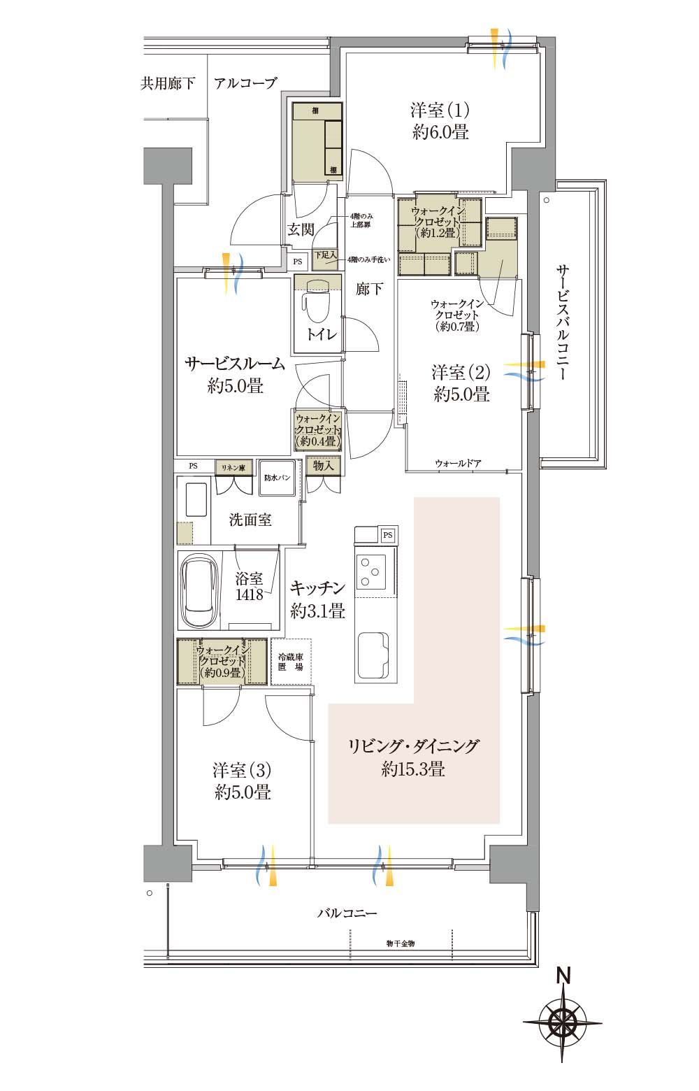 • ◎三面開口の角住戸